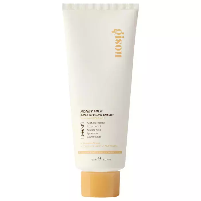 Um creme de pentear cinco em um que oferece proteção contra calor de até 450°, hidratação, controle de frizz e brilho vitrificado com memória de estilo e fixação flexível.
