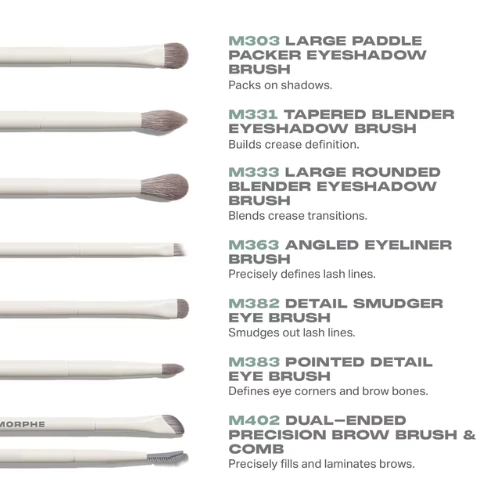 Defina, lineie e emoldure com o conjunto de pincéis de olho de 7 peças da Morphe's Eye Want It All. Este conjunto apresenta seus pincéis de olhos e sobrancelhas mais essenciais - cada um habilmente desenvolvido com cerdas de nível superior e cabeças aperfeiçoadas para tirar o máximo proveito de sua aplicação de maquiagem todas as vezes.