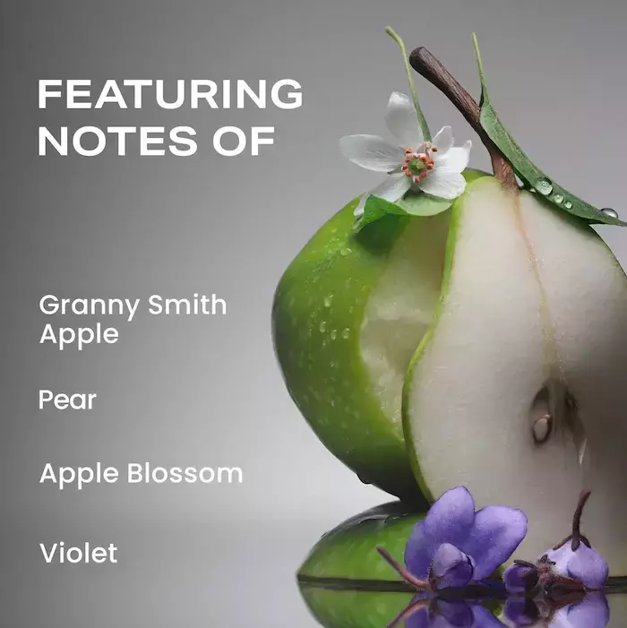 Sobre a fragrância: "Fui inspirado pela sensação de morder uma maçã verde crocante - azeda, mas doce. É uma mistura de frutas frescas: pêra suculenta, maçã crocante e melancia encontram a flor da flor da macieira e da fruta do dragão. Esses aromas vibrantes são então envoltos em um praliné aveludado e néctar de almíscar cremoso. É uma nova visão de um perfume frutado clássico." —Jérôme Epinette, perfumista