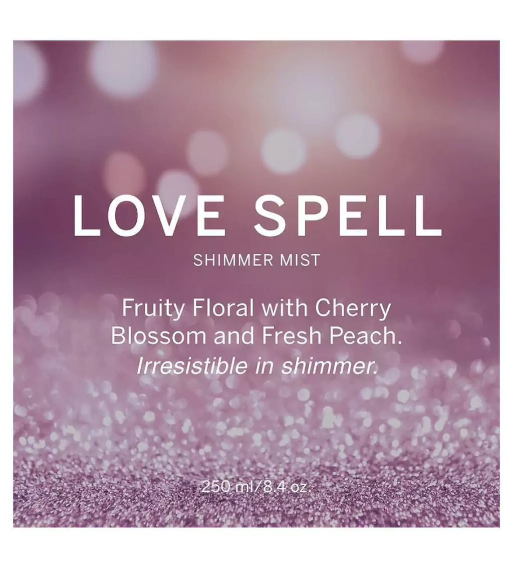 A fragrância do Love Spell é a fusão luxuosa de Pêssego, Flor de Cereja e Jasmin Branca em uma colônia para todo o corpo. Com leve poder de hidratação e com um perfume maravilhoso, deixa a pele com uma fragrância irresistível. Sua fórmula reúne aloe vera, aveia, extrato de semente de uva, oxidantes e as vitaminas C e E para hidratar e perfumar sua pele com frescor e leveza.