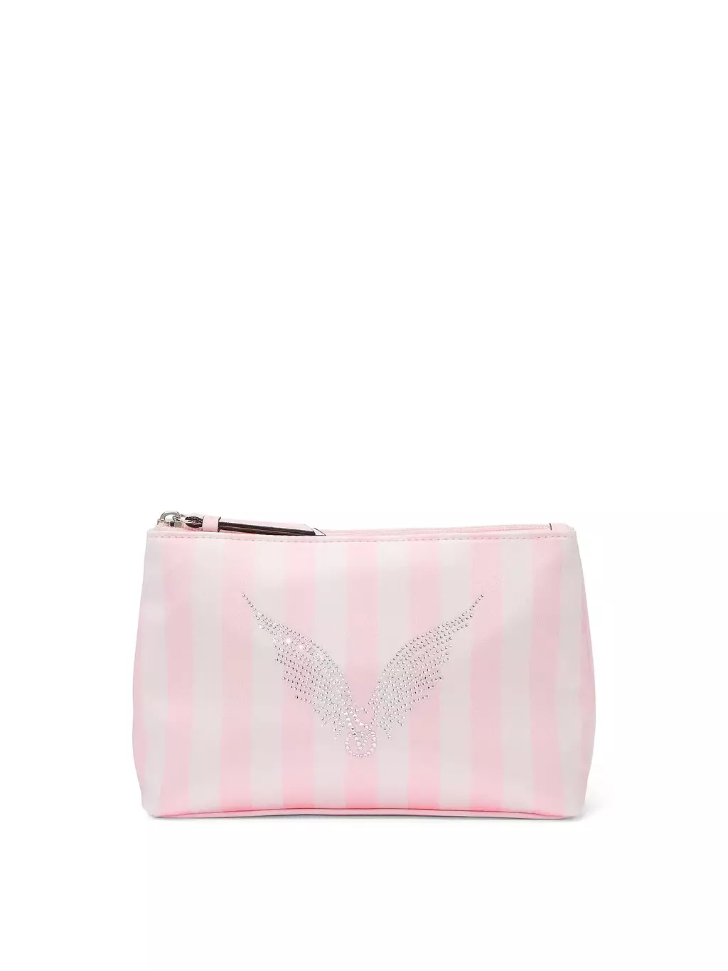 Voando em cetim. Esta bolsa adornada com asas de anjo ajuda a mantê-lo elegantemente organizado. Apresenta nosso padrão Heritage Stripe e enfeites de cristal para maior brilho.